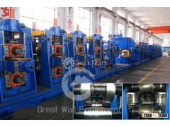 Feed steel strip of a certain specification into the machine and then use forming roll to crimp the steel strip into pipe-blank. Then under skin effect and proximity effect of high frequency electric current, induced electricity is concentrated onto the bonding surface of the pipe profile fringe and heat up the pipe profile fringe quickly to the welding temperature and finish welding under the pressure of the squeeze roller. After cooling, sizing and broad straightening, you can get the steel pipe of needed specification. Our products such as roll forming unit, FFX forming unit, cage forming unit can produce X80 and J55 API petroleum casing pipe and petroleum and gas pipe, which conform to the standard of API-5L,API-5CT. This unit can also produce special pipes for air cooling condenser used by electric power plant or steel mill.